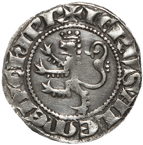 The king seated upon throne, holding sceptre in right hand and globus cruciger in left. In left field, star.